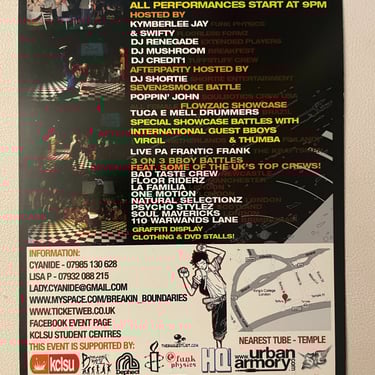 I ran a series of Breakin' events and workshops in the UK with various highly talented international bboy and bgirls.